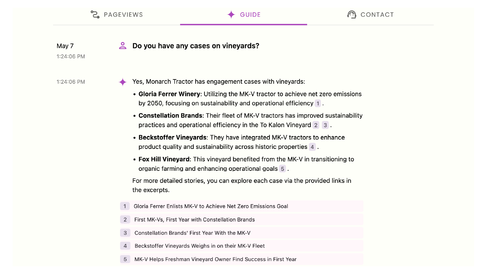 Internally, the Monarch team can see what matters most to buyers and adjust their content strategy accordingly. That feedback loop improves the site for the next visitor, and the one after that, creating a virtuous cycle of better education and deeper engagement.