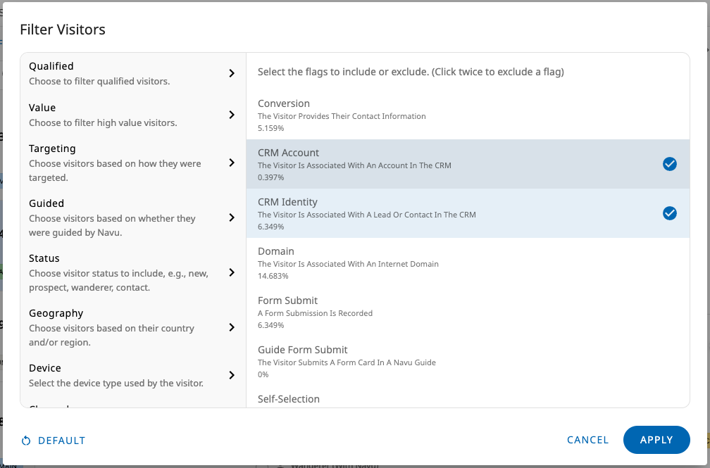 In addition, if the HubSpot embed code is installed on your website, then Navu will leverage HubSpot first and third party cookies to determine the identity of the visitor. In other words, if HubSpot knows the identity of the visitor, then Navu will also be aware of their identity. This is beneficial when viewing visitor journeys, but more importantly, the HubSpot contact information can also be used when building filters for targetable audiences. This allows you control the behavior of the sidebar for visitors based on their identity or account information in HubSpot.