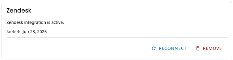 Once the integration is ready, you’ll be returned to the Navu Integrations page and the Zendesk card will look like this.