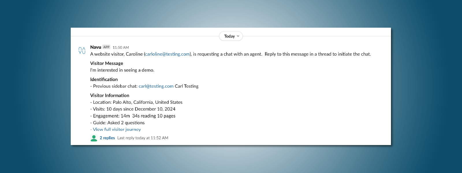 No matter what your marketing technology stack looks like, Navu is a breeze to add and maintain to your website. With integrations into major Salesforce, HubSpot, Slack, and many many more common solutions, you can rest easy knowing the Sidebar won’t give you compatibility headaches.