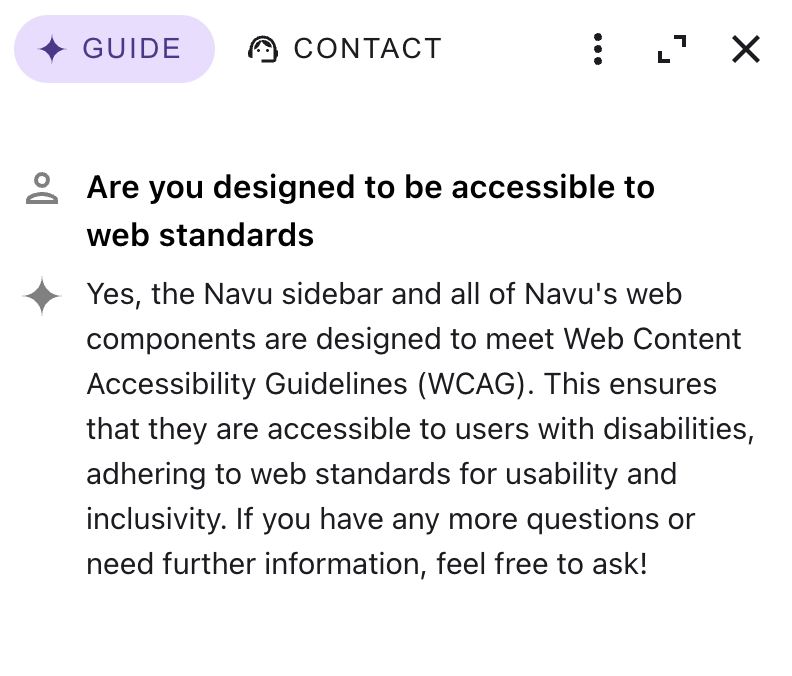 3. Verification: It typically takes less than an hour for Navu’s indexer to pick up a change like this. So, an hour later we verified the guide AI had been updated by re-asking the question above.