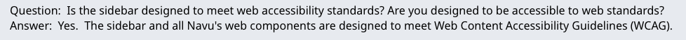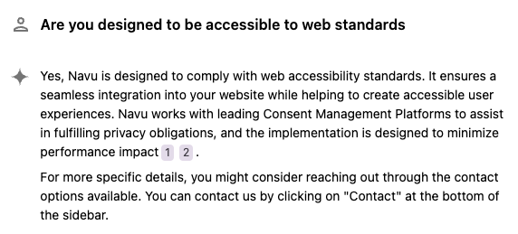 2. Resolution: Per the suggestion above, we have a “noindex” document on our site right here that we use for exactly the purpose of quickly updating the AI with new knowledge. So, the quick addition of an accessibility Q&A should take care of things.